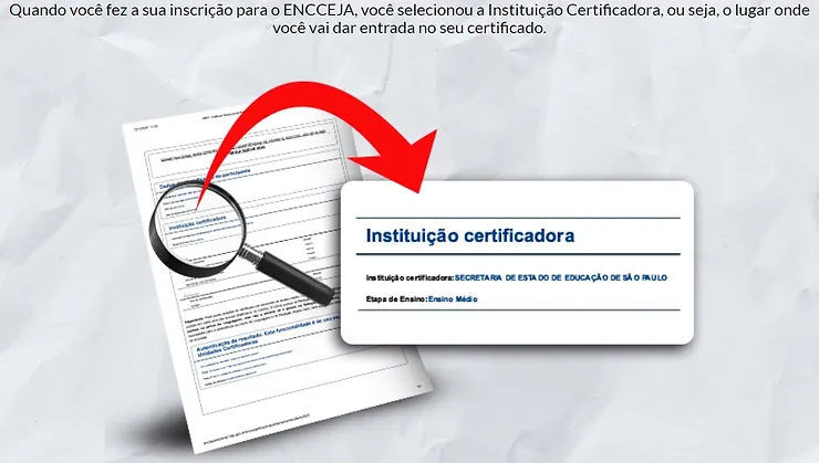 No momento da inscrição no Encceja, você escolheu uma instituição certificadora, que pode ser uma secretaria estadual de educação ou um instituto federal. Para descobrir qual foi a sua escolha: